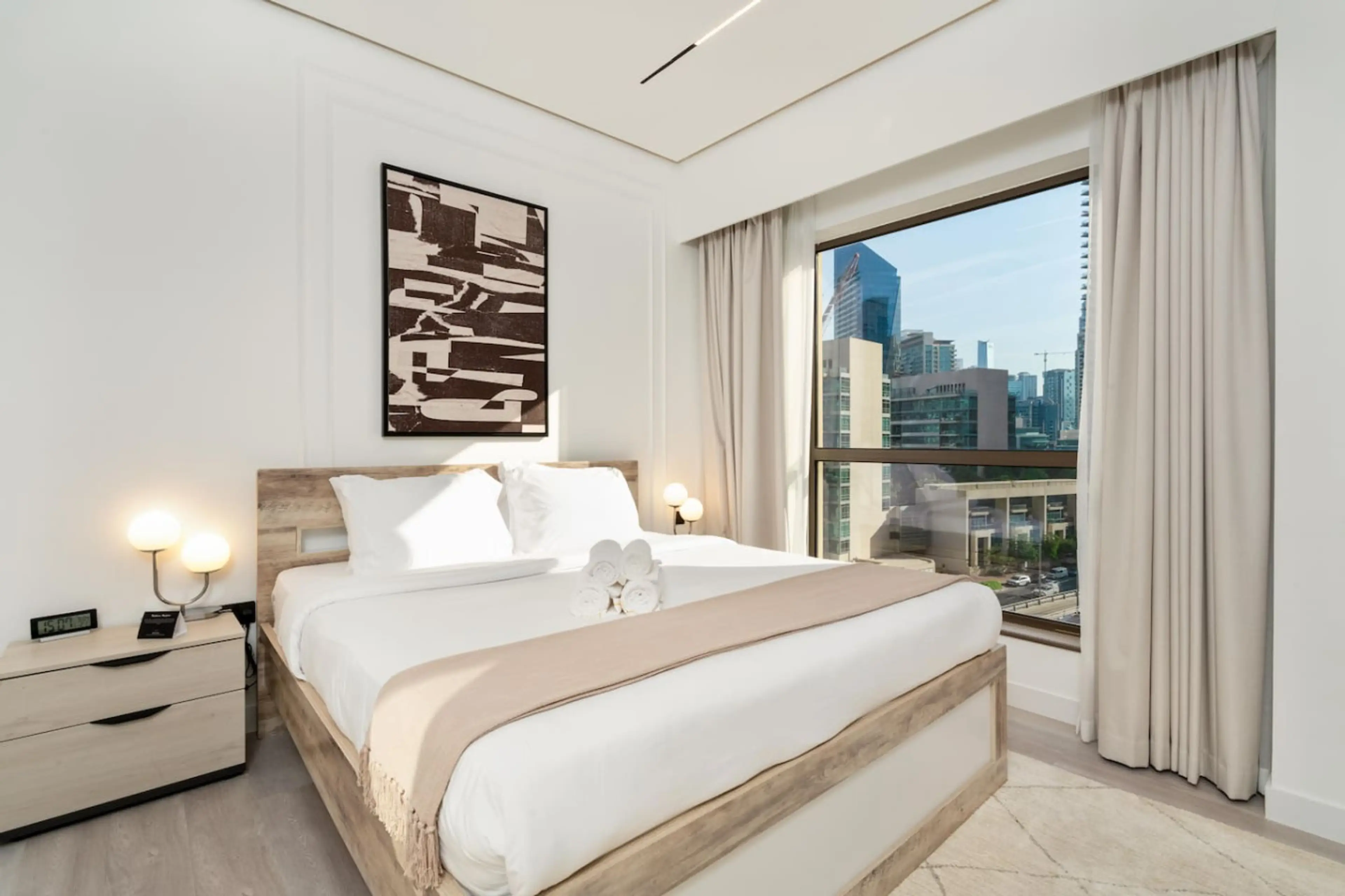 Spacious 1-bedroom apartment by Maple Suites® with stunning Marina and sea views. Located at one of the best towers at JBR (Jumeirah Beach Residence), this apartment features a king- size bed, sofa bed, fully-equipped kitchen, high-speed Wi-Fi, flat-screen TV, washing/dryer machine, and free parking...